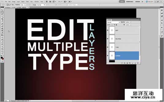 经常编辑文本图层的同学应该知道文本工具菜单栏最右边的按钮可以调出字符设置面板,所以当你要一次调整多个文本图层的时候,就只需要按住Cmd/Ctrl 选中多个文本图层,然后在字符设置面板中一次搞定多个图层的设置。
