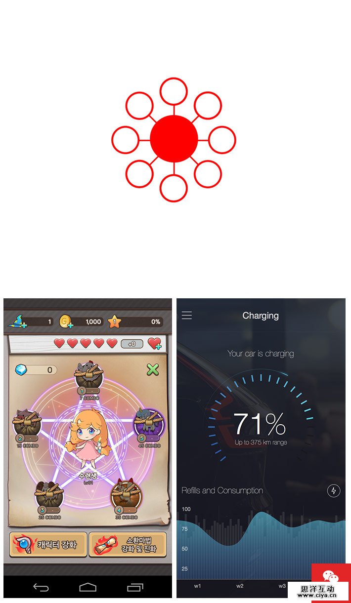 因为圆形具有灵动、活跃、有趣、可爱、多变的特质。在界面设计中善于将圆形的设计与动画结合,能让整个软件鲜活起来。