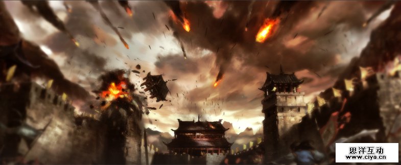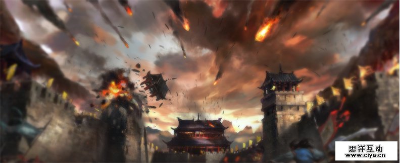 选用这些素材出于以下原因:首先,根据脑海中大致想到的场景,布局上应该是一个由四周向中心的布局形式,所以在选择场景的时候我选择了一张正面居中的图素,而且战火纷飞很符合整个专题的调性;其次,为了保证画面的平衡,通常四周的人物数量和动作造型基本保持对称是一个比较稳妥的方法,所以选择这六个人设主要是出于他们动作的考虑。