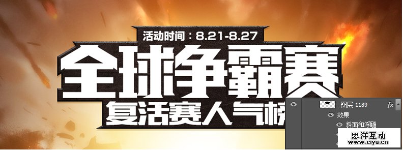 先对文字按照主次关系进行排版,这里同样最好采用居中的形式。“全球争霸赛”这几个字是同事之前做好的变形,我这里直接拿来用了,文字变形不是本次教程的重点,所以这里不做详细介绍,感兴趣的可以看下《字体变形记!手把手教你用AI绘制Q版的萌萌哒字体》。
