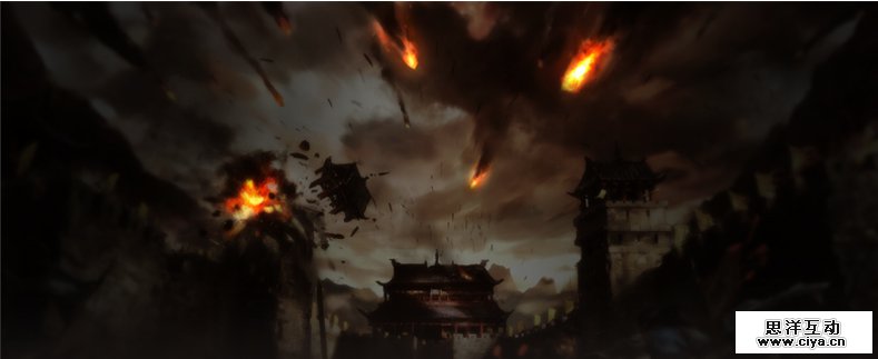 这里要注意调色的时候稍微往页面的整体色调上靠拢。最上方的金属修饰物是平时收集的,可以从一些武器,金属盔甲以及一些游戏ui上面扣取,在经过加工所得,这里作为装饰物也可以起到很好的作用。有的同学也许会问,为什么不把这个修饰物放在下面呢?原因很简单,因为下面我们还要放一些文字内容,正好可以放在两个刀刃之间。
