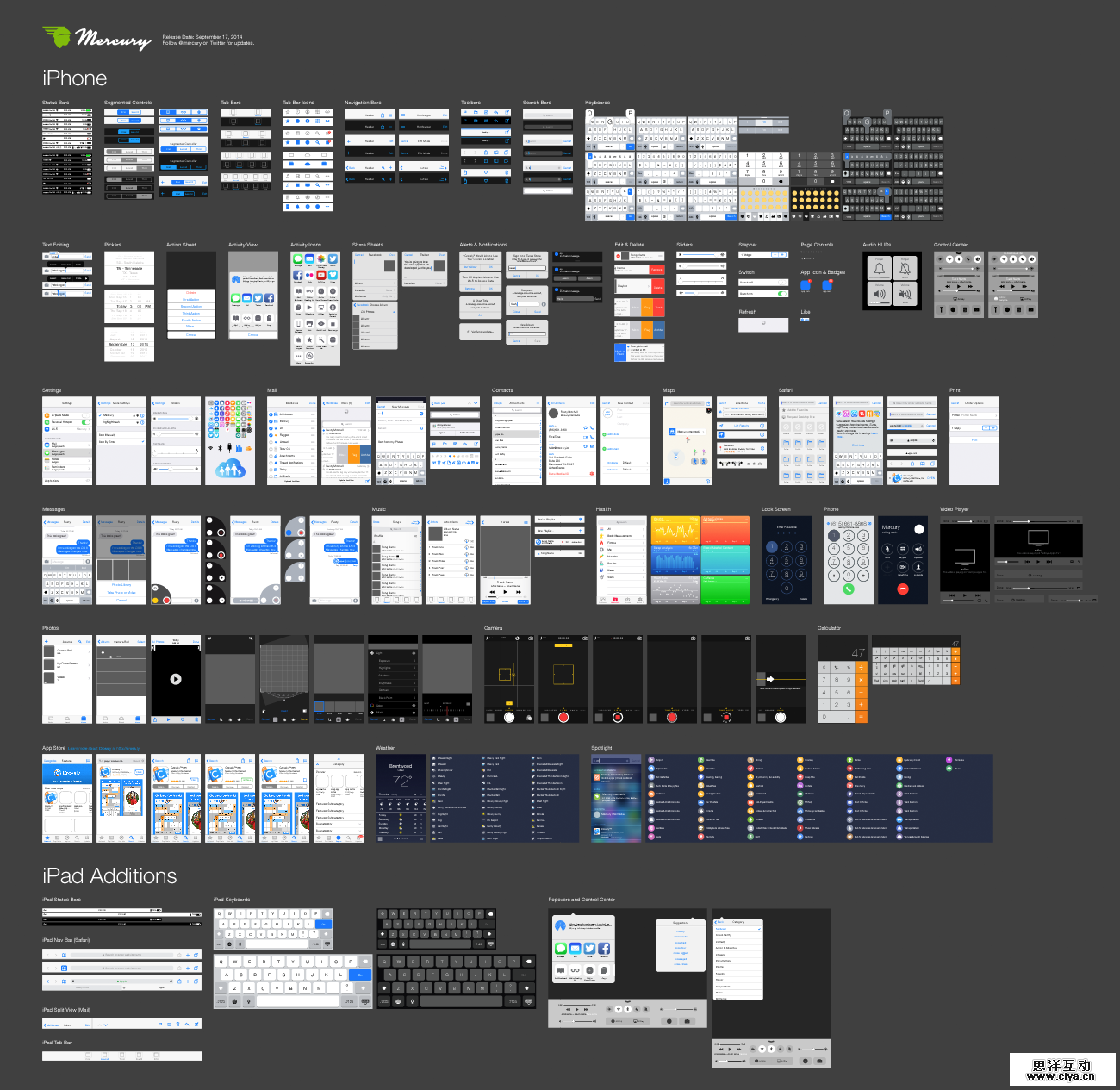 这是针对iOS 8的一套非常完整的UI包。这个模板虽然全面但是只适用于Illustrator。