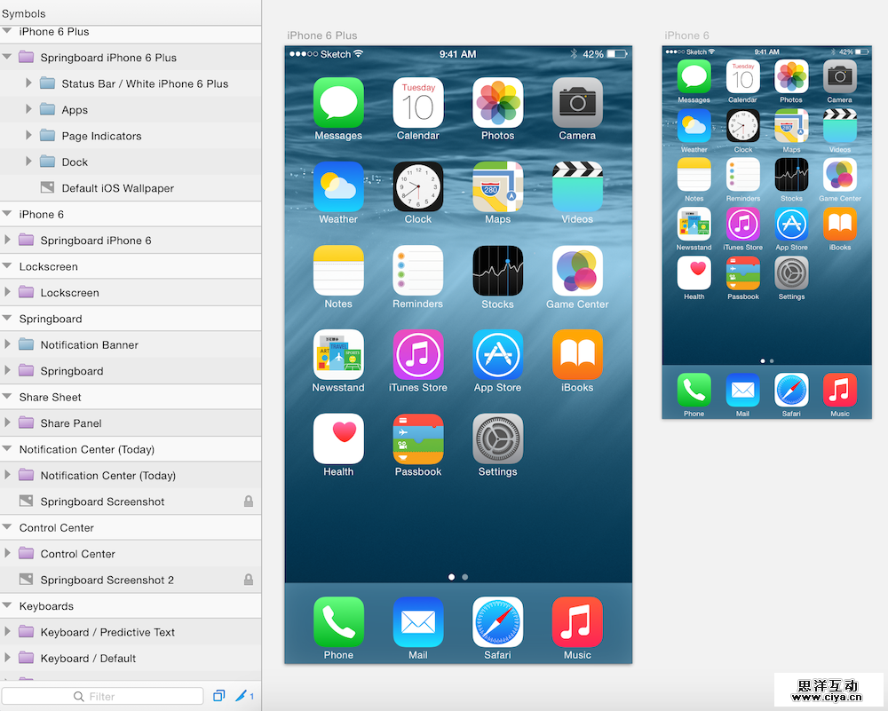 iOS 8 Template for Sketch是一个绝佳的起点。其可为你提供iOS 8中现有的大多数UI元素,你可以在自己的设计中随心使用。在使用时,要逐渐习惯标题、按钮、对话框等元素的尺寸。