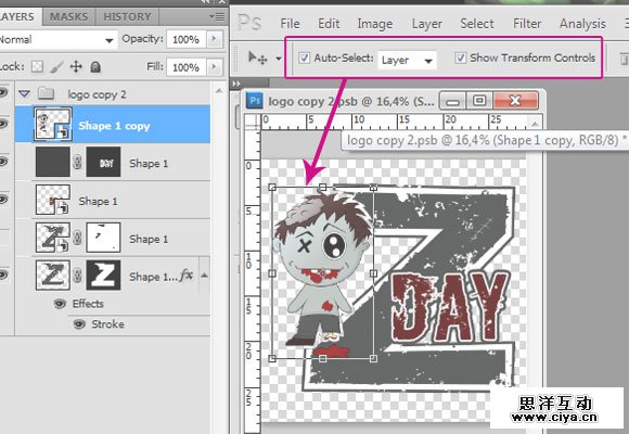 这其实是移动工具在Adobe Illustrator和Photoshop Elements中的工作方式,不过在Photoshop中,如果你 a)有一大堆图层并且 b)没时间为他们重命名,那么选择图层就是一个非常痛苦的工作了。通过选中自动选择复选框并选择图层,你的移动工具将会激活你所点击的任意图层。