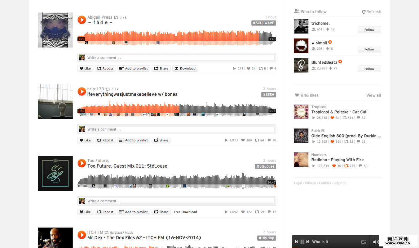 @十萬個為什麽 :SoundCloud是个非常酷的地方——听众可以关注艺人,获取他们最新的音乐,艺人可以在此发布单曲甚至完整专辑来吸引粉丝。但通常用户知道,与这个平台进行互动是很让人沮丧的。