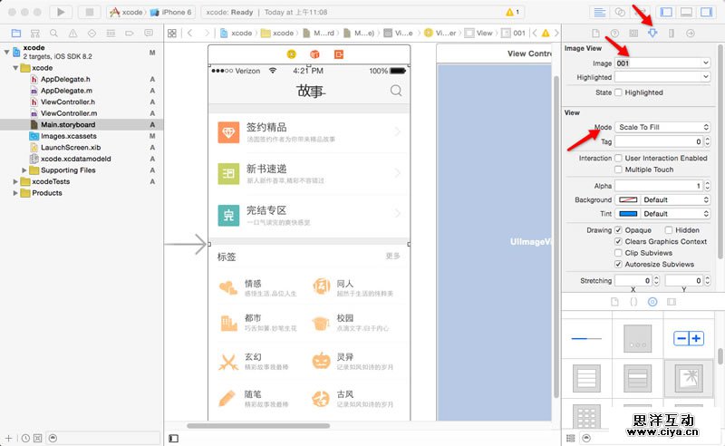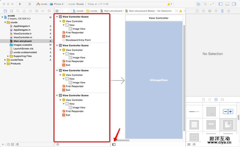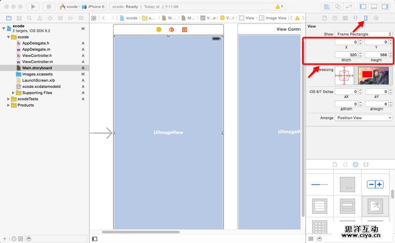 返回Main.storyboard文件,选中刚刚拖动到VC里的UIimageView,接着我们可以对这个容器的属性进行设置了。