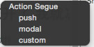3. 在弹出的层中选择“modal”(push现在不可用,下节讲解push的用法)