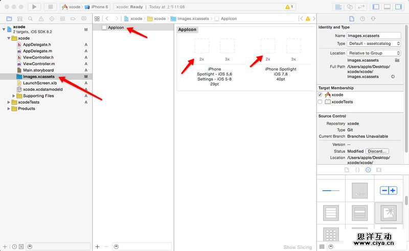 秒懂!是的,Xcode在新版本中为我们提供了这个images.xcassets功能,我们可以将所有图片都扔在这个里边(当然,还有一种传统的导入图片方式,就是之间把图片文件拖动到左侧的文件目录中,这里静电不推荐.)appicon是程序的图标,现在我们可以将制作好的图标文件拖动到里边,如果现在没有准备这个图标,也无所谓,没有他我们可以照样继续工作。待会儿再做不迟。