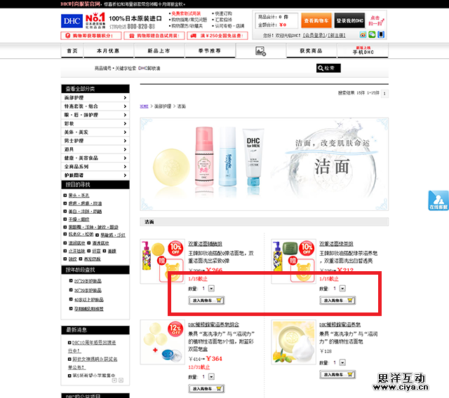 在商品列表页上直接显示“加入购物车”按钮并不少见,但能同时显示购买数量的就不多了,DHC官网实现了这一操作,让用户能够直接选择商品数量和种类。
