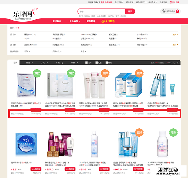 乐蜂网在商品列表页增加了用户很看重的评论和购买人数模块,这样能让用户更直观的看到商品的人气指数。