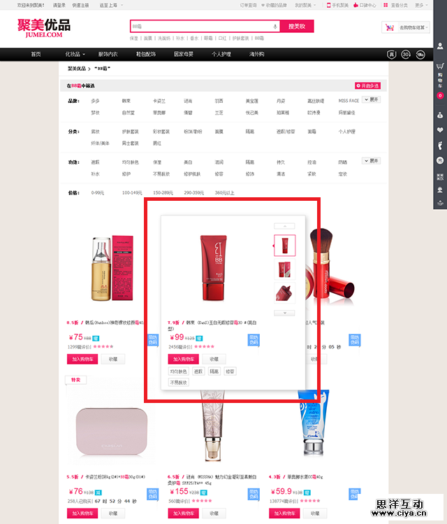 在商品列表页中,力所能及的步骤减少只有从商品加入购物车开始着手。但在此之前的大前提是商品信息展现的足够全面和完整,要在小区域内表达出所有内容也的确是一件比较困难的事。