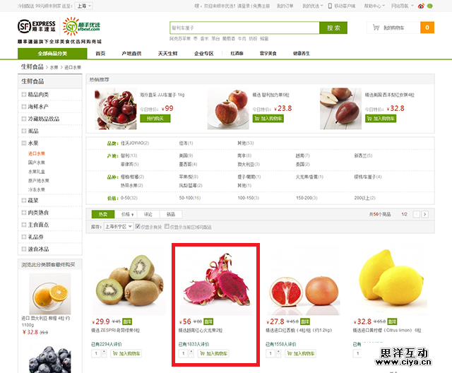顺丰优选的整个商品列表页面看起来很简明,但展示的商品信息却并没有弱于其他电商网站,用户真正希望得到的资讯都得到了完整的体现。