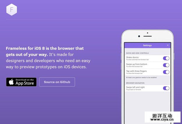 Frameless是一款为设计师和开发者量身打造的浏览器,使用环境是iOS8。它可以帮你轻松快捷地在iOS设备上预览设计原型,用手势操作来查看浏览历史或者调用键盘,支持多指手势和摇动操作。这些进阶功能都可以在设置中禁用或者开启。最重要的是,它还支持Framer Studio,可以快速预览HTML原型。