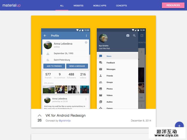 Material Up是一组靠谱的Material Design风格的UI/网页素材库,各种截图内容丰富,赐予你无限灵感!