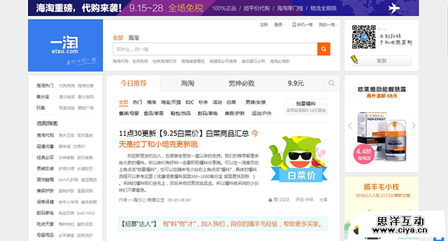 一淘网的首屏不太符合大多数人的使用习惯。当用户进入一个电商网站,首先一定会被图片吸引,很少有人会愿意逐字逐句的看完大段文字,所以详细的描述并不适合放在首屏的位置。