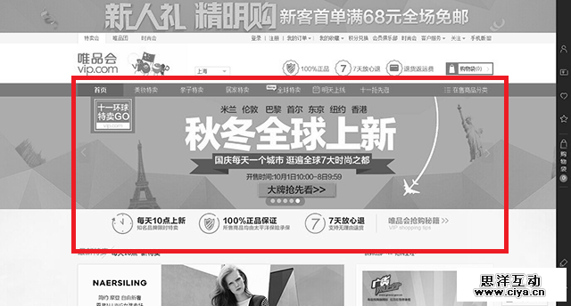 我们认为,首屏是吸引用户至关重要的通道,很多网站因为对首屏的忽视,从而产生了一些用户体验上的问题。电商网站相比较普通的官方网站在性质上更特殊一些,电商首屏应该带着商家的目的性去迎合用户的常规使用习惯,而不是漫无目的地把首屏变成布告栏。