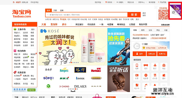 淘宝网在右上角有一个小小的鼠标交互效果,点击后进入的是一个活动专区,翻页效果在心理学上被认为更容易触发用户想要点击的冲动。
