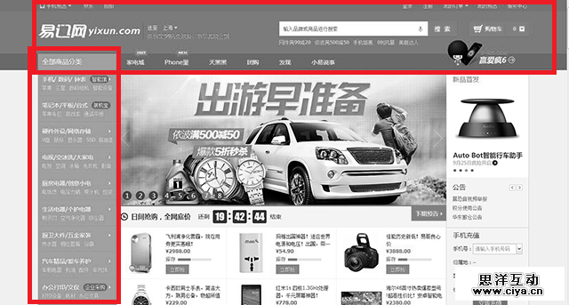 易迅首屏算是个反面教材。首屏原图会令人觉得太过繁复,所以视觉焦点自然会分散开来。