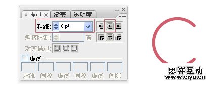 根据实际情况在描边面板中设置描边的粗细值,并按下圆角端点选项使其端点保持圆滑状。