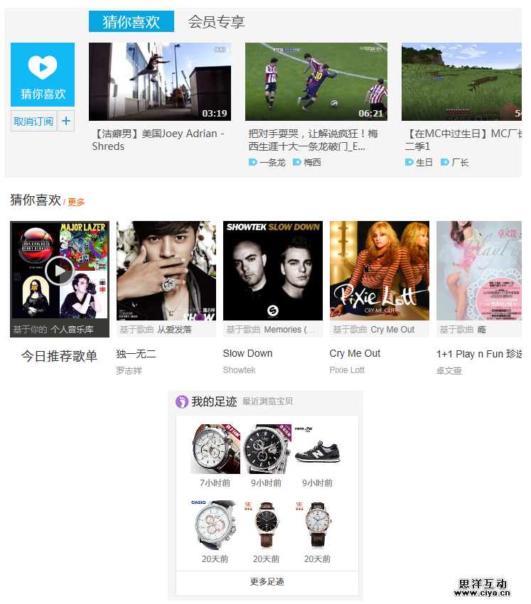 我们认识一个新的朋友,接触后大家都会对对方产生一个印象,浅到知道他叫什么,方便下次打招呼;接触的多了会慢慢对对方有更深入的了解,比如兴趣喜好、背景等。浏览一个网站也是一样,现在几乎所有网站都在想尽办法获取用户资料,以便做分析和针对推送,但有没有想过我们给用户反馈了什么他所要得到的东西。一味的索取没有回馈,那这段感情肯定长久不了。为什么要起这个标题,也是这个意思,“猜你喜欢”感觉只是多出一个内容推送模块,但背后潜藏着非常多的用户分析研究,而反馈给用户的感觉是他在这个网站浏览过后的存在感,无时无刻的和用户保持互动,才是用户体验最高境界。