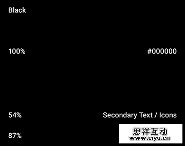 黑色:[87% 普通文字] [54% 减淡文字] [26% 禁用状态/提示文字] [12% 分隔线]