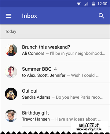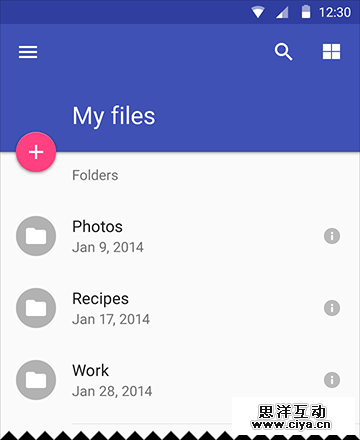 Material design重视动画效果,它反复强调一点:动画不只是装饰,它有含义,能表达元素、界面之间的关系,具备功能上的作用。