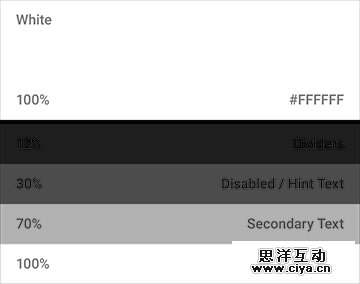 白色:[100% 普通文字] [70% 减淡文字] [30% 禁用状态/提示文字] [12% 分隔线]