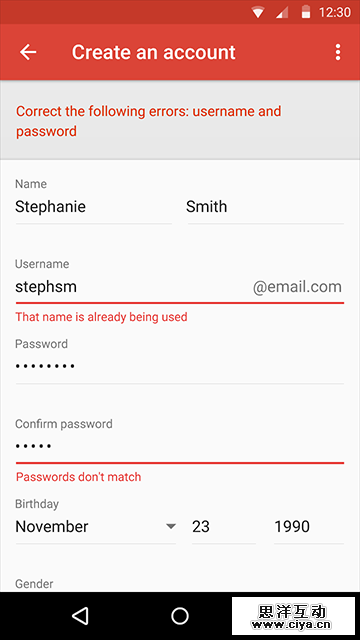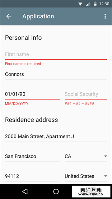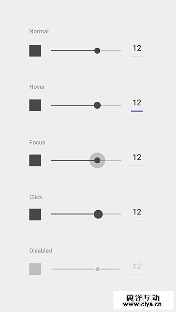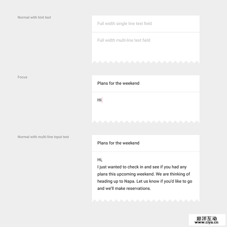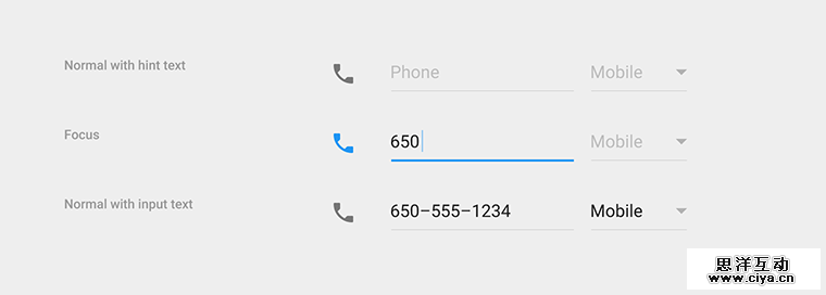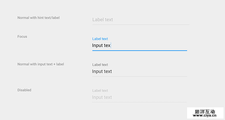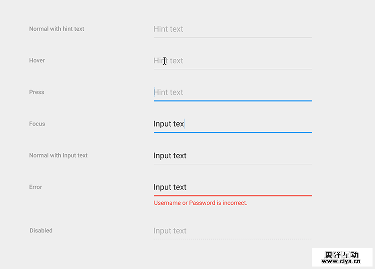 激活状态和错误状态,横线的宽度变为2dp,颜色改变。