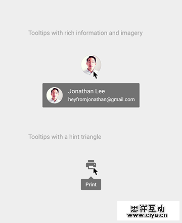 提示只用在小图标上,文字不需要提示。鼠标悬停、获得焦点、手指长按都可以触发提示。