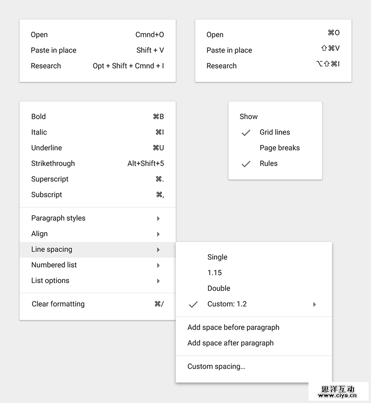 顺序固定的菜单,操作频繁的选项放在上面。顺序可变的菜单,可以把之前用过的选项排在前面,动态排序。菜单尽量不要超过2级。