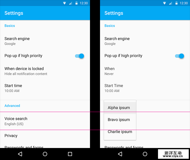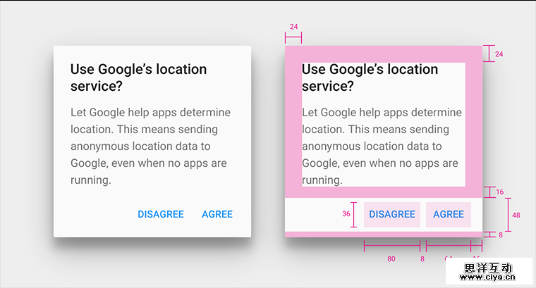 不一定要用户响应的提示,可以使用Snackbars。非常重要的提示,必须用户来决定的,应该用对话框。