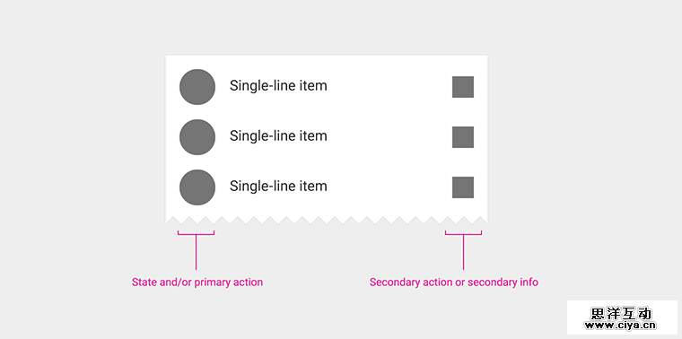 列表由行构成,行内包含瓦片。如果列表项内容文字超过3行,请改用卡片。如果列表项的主要区别在于图片,请改用网格。