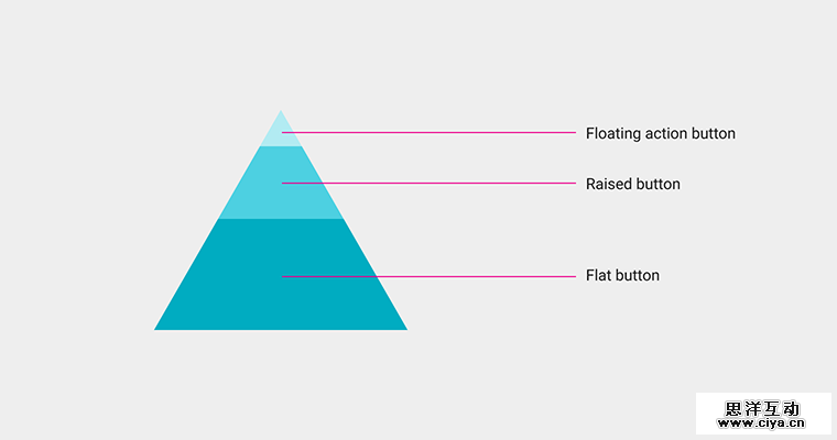 按钮分为悬浮按钮、凸起按钮和扁平按钮3种。重要性如下递减: