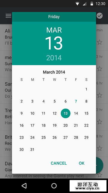 日期和时间选择器是固定组件,在小屏幕设备中,通常以对话框形式展现。