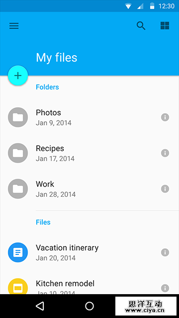 最重要且随处用到的操作,建议使用悬浮按钮。信息较多时,选用凸起按钮可以有效突出重要操作,但注意纸片不要叠太多层。扁平按钮适合用在简单的界面,例如对话框中。