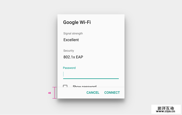 输入框点击区域高度至少48dp,但横线并不在点击区域的底部,还有8dp距离。