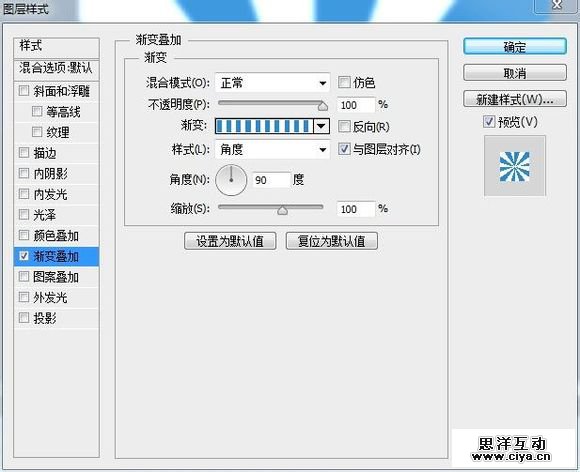 新建个文件,填充白色背景,直接进入图层样式,添加渐变叠加: