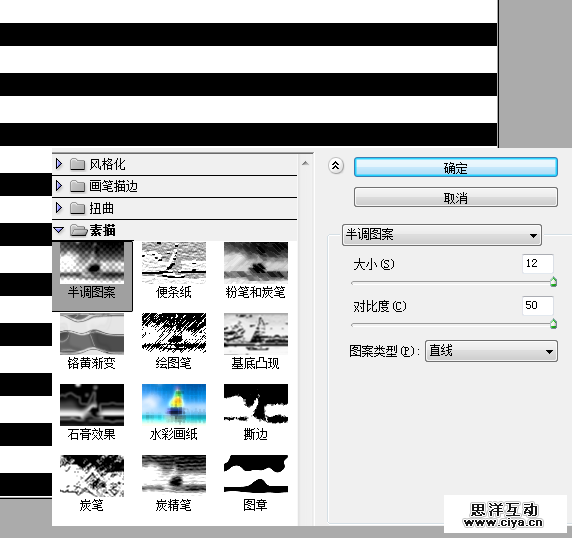 比如说第一种方法,光做出这条状方法无数种。可以用选区填充,可以用钢笔画形状,可以用滤镜,可以用图案,可以用画笔,可以用铅笔,等等