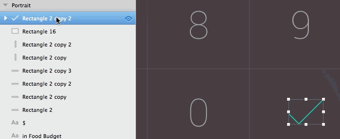 提示:当前图层重命名后,按TAB键进入下一层(或按Shift + Tab返回上一个图层),然后点击⌘+ R开始重命名。