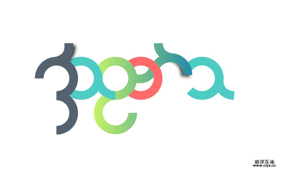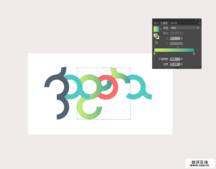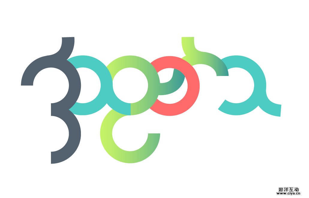 开始上色的时候,会将现有的曲边再分拆,这时,依然可以选择剪刀工具,只是不要再删除。另外需要相应调整字母与字母的叠放顺序,比较快捷的方式是按住ctrl+[]来进行叠放。经过上色修饰后的效果如下。