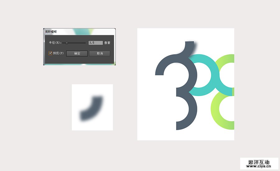 再对图形的部分做出点阴影的修饰。选中需要添加阴影的部分形状,然后复制一份。进入【效果>模糊>高斯模糊】,模糊参数在此我设置的是3.5,根据图形的大小数值会有所不同。模糊后,将阴影放置于这个形状的下方。