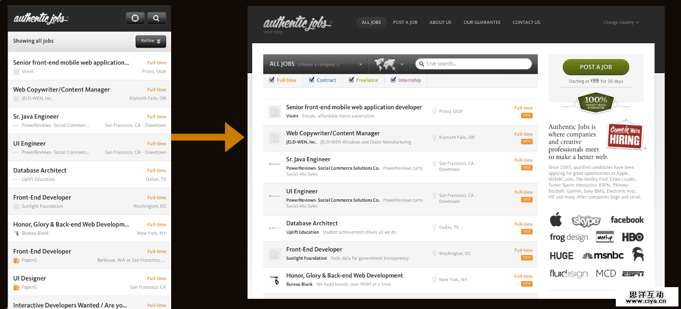 移动导航就像你真正的朋友一样:彼此需要,但又给彼此空间;而那些假装跟你很要好的朋友总是在你需要的时候消失(当你需要导航的时候找不到)或者占据你的个人空间而让你抓狂(比如:擦,从我床上滚下去);因此,针对响应式导航进行设计,需要在访问的便携性和空间上做一个平衡。