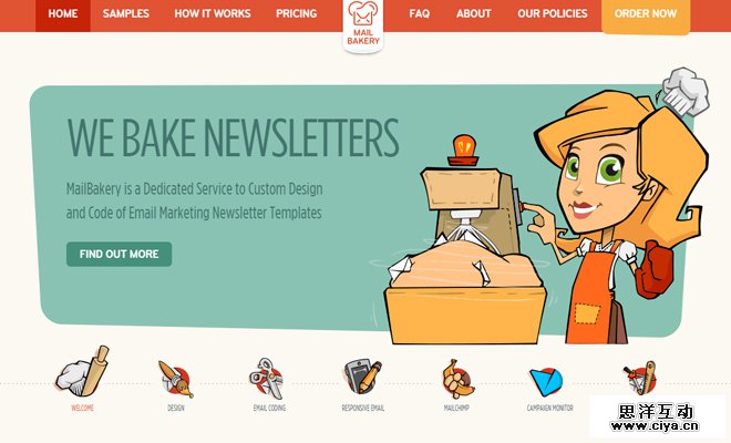 MailBakery 就是这样一个典型的案例,它使用了个大图来宣传它们的服务。当光标移动到下方每一个图标上的时候,上方的大图内容会被替换成相应的图片内容,这样的图标+图片的组合在设计上保持着高度的一致性。