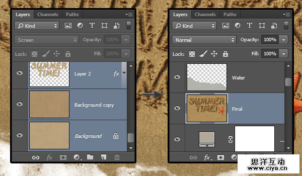选择除了泡沫和Water图层以外的所有图层,复制一下,然后使用图层 > 合并图层。把合并后的图层重命名为Final。