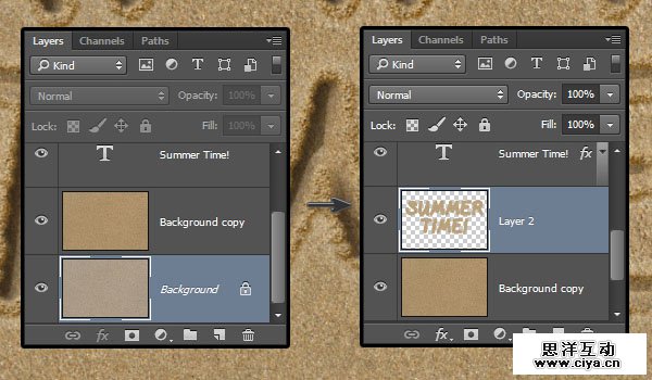 选择原始的背景图层,然后按Command/Ctrl+J以复制选区到新图层。这个图层会叫做图层 2。把它拖到背景图层和文字图层之间。