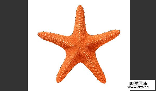 打开白色背景上的独立的红色海星图像,使用魔棒工具选择画面上的白色区域,然后使用选择 > 反选,再使用编辑 > 复制来复制一个海星。
