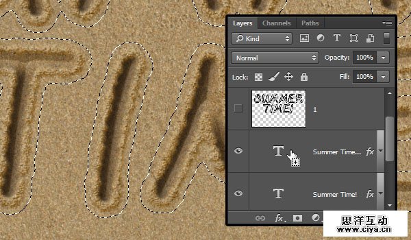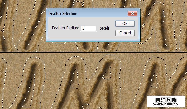 为了让描边和沙子的质感融合得更自然,我们要添加一个过渡区域并羽化。再次使用图层1创建一个选区。