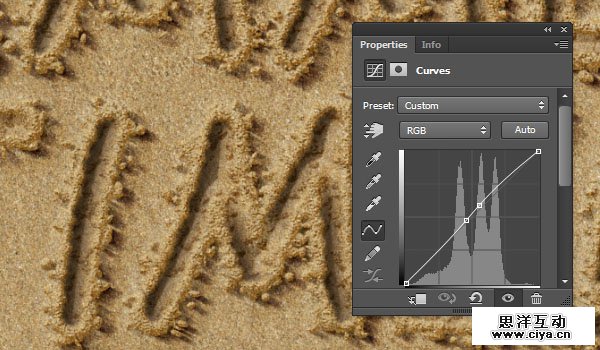 像图中这样调整曲线,你也可以单击带有箭头的小手的图标,然后在图像中单击并拖动以随意调整亮度。