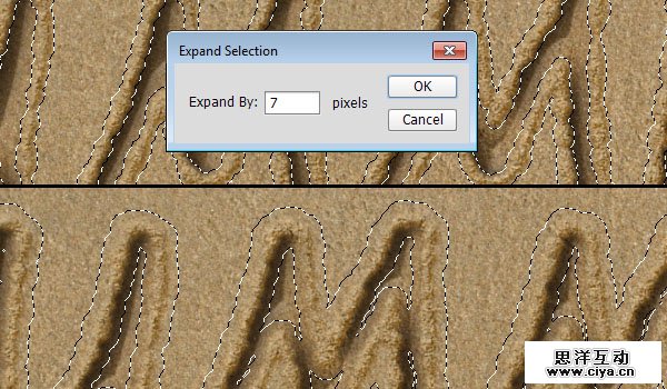 选择 > 修改 > 扩展然后输入7。
