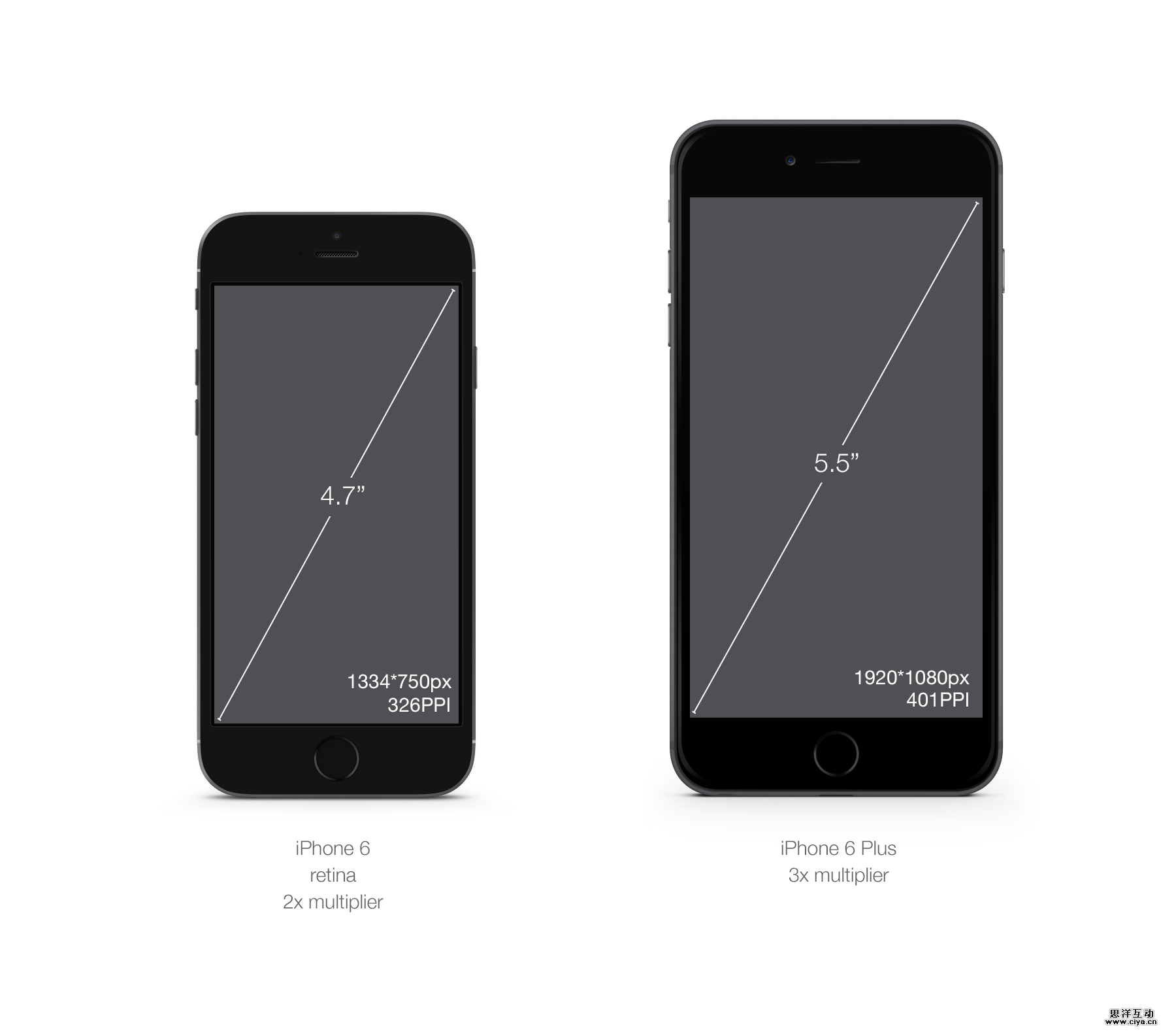 iPhone 6比5要大一点(0.7英寸左右),但是PPI相同。iPhone 6 Plus由于它的尺寸,5.5英寸,产生了iOS上新的像素比,@3x。